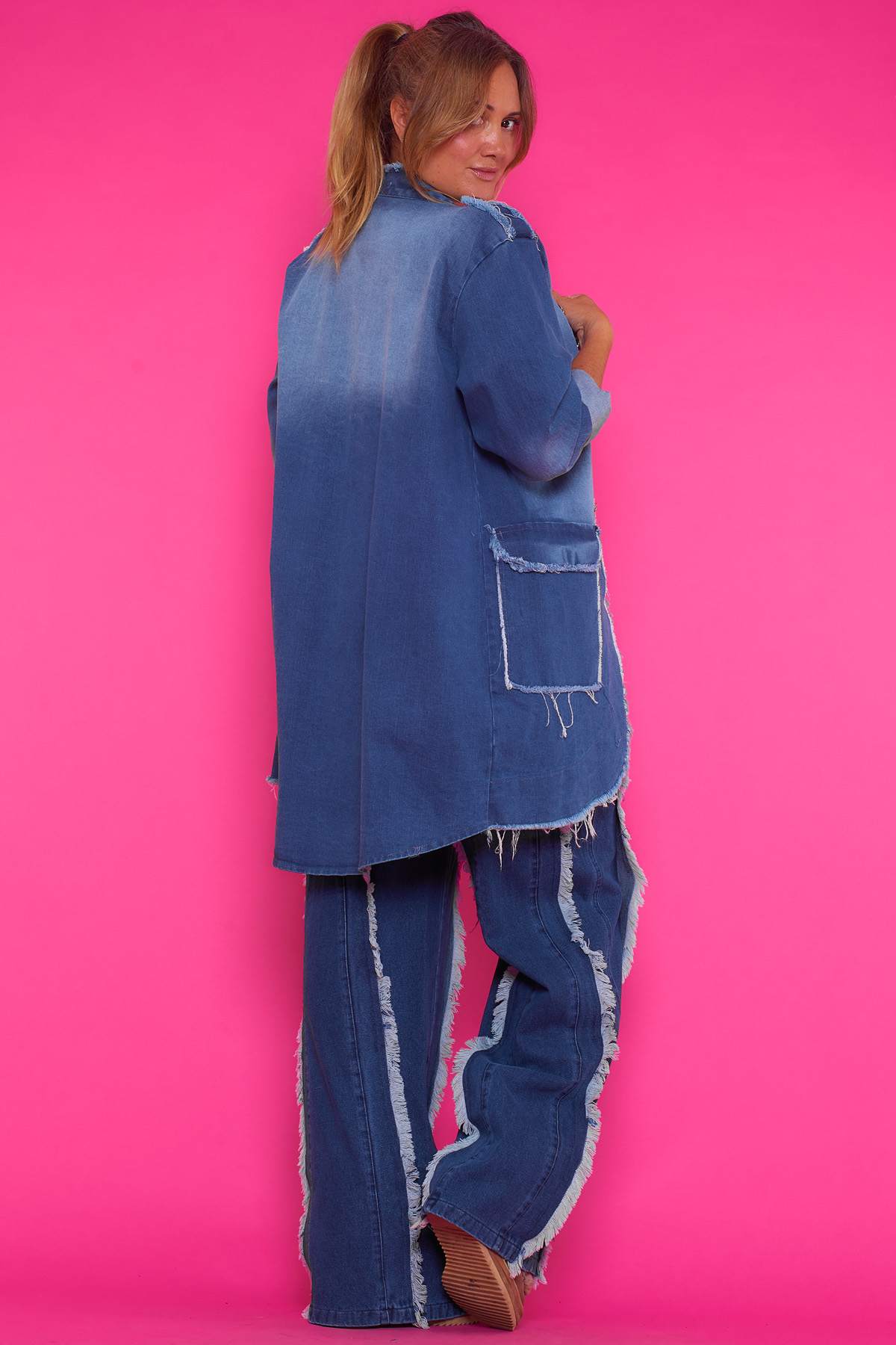 Nota: los tonos azules pueden variar levemente y los bordes descosidos no son uniformes o iguales, por lo tanto esto no se considera como tara