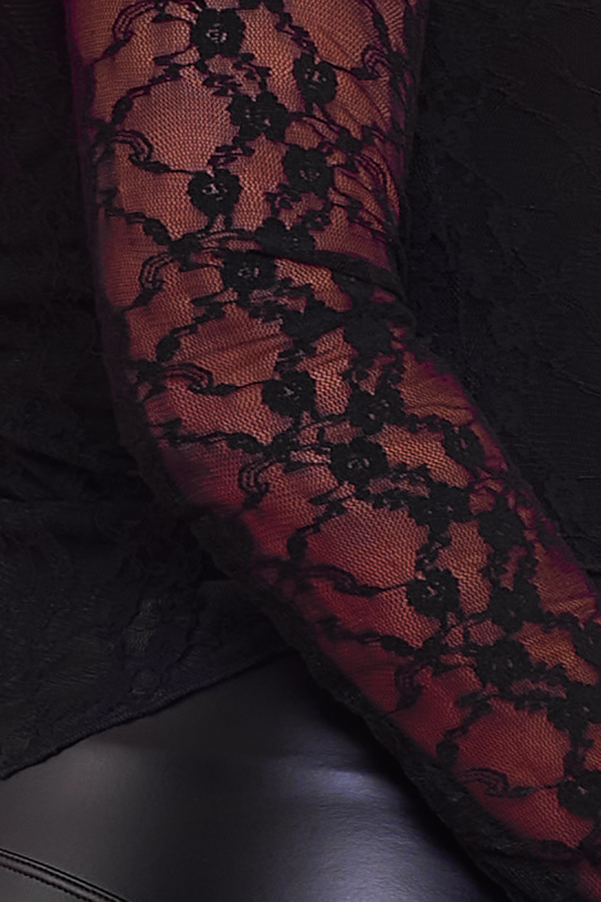 Una blusa de encaje elástica que se caracteriza por tener un corte asimétrico que estiliza la prenda por completo.