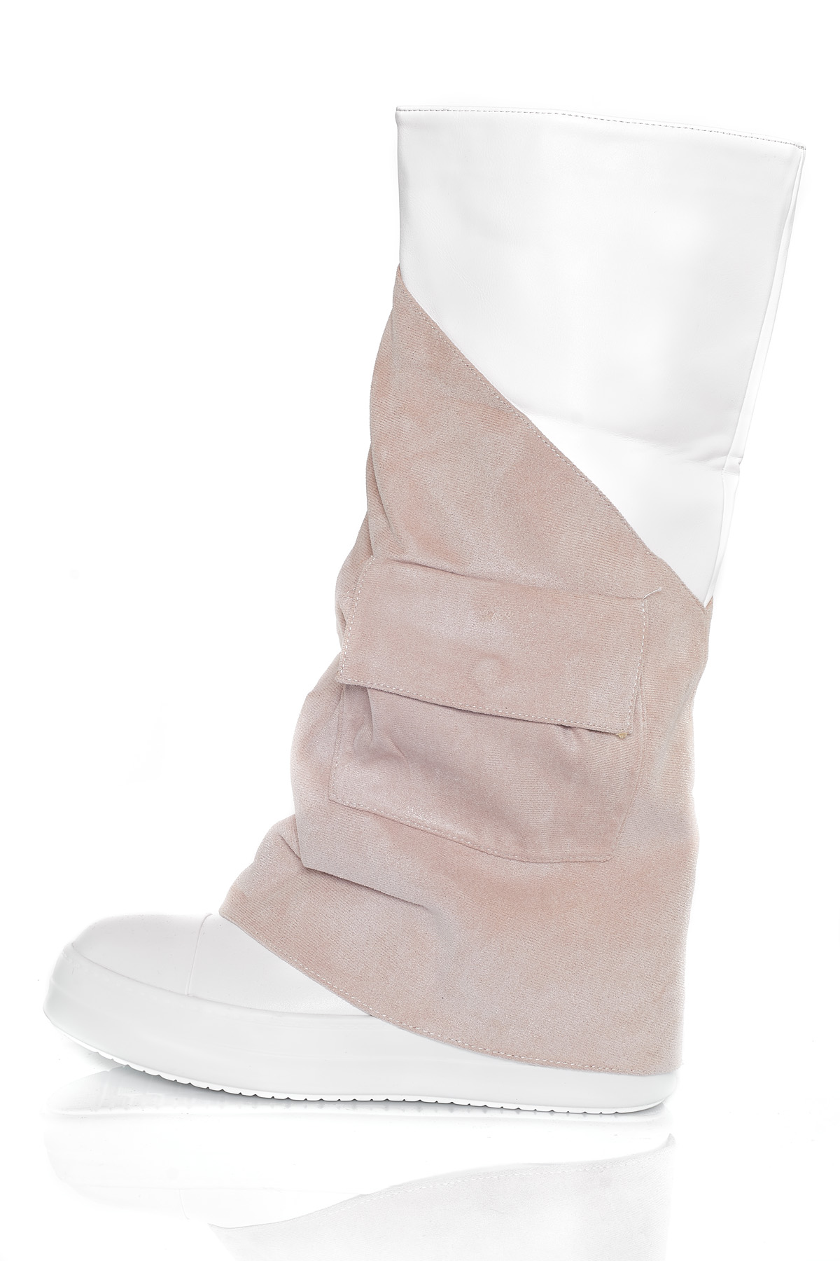 Unas botas de diseño único e inigualable. La parte de abajo de la bota tiene el diseño de unas zapatillas. Se abren por una cremallera y tienen un bolsillo en los laterales.