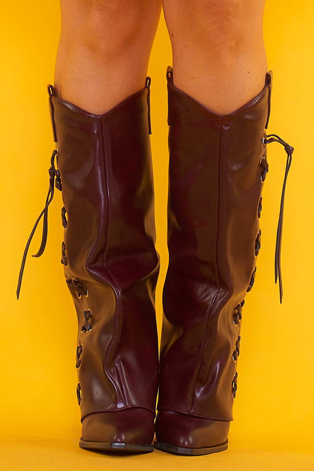 Unas botas altas de tacón que tienen una cremallera en la parte interior.