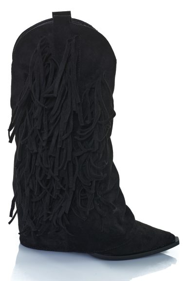 Unas botas altas de suela ancha que se abren por medio de una cremallera.