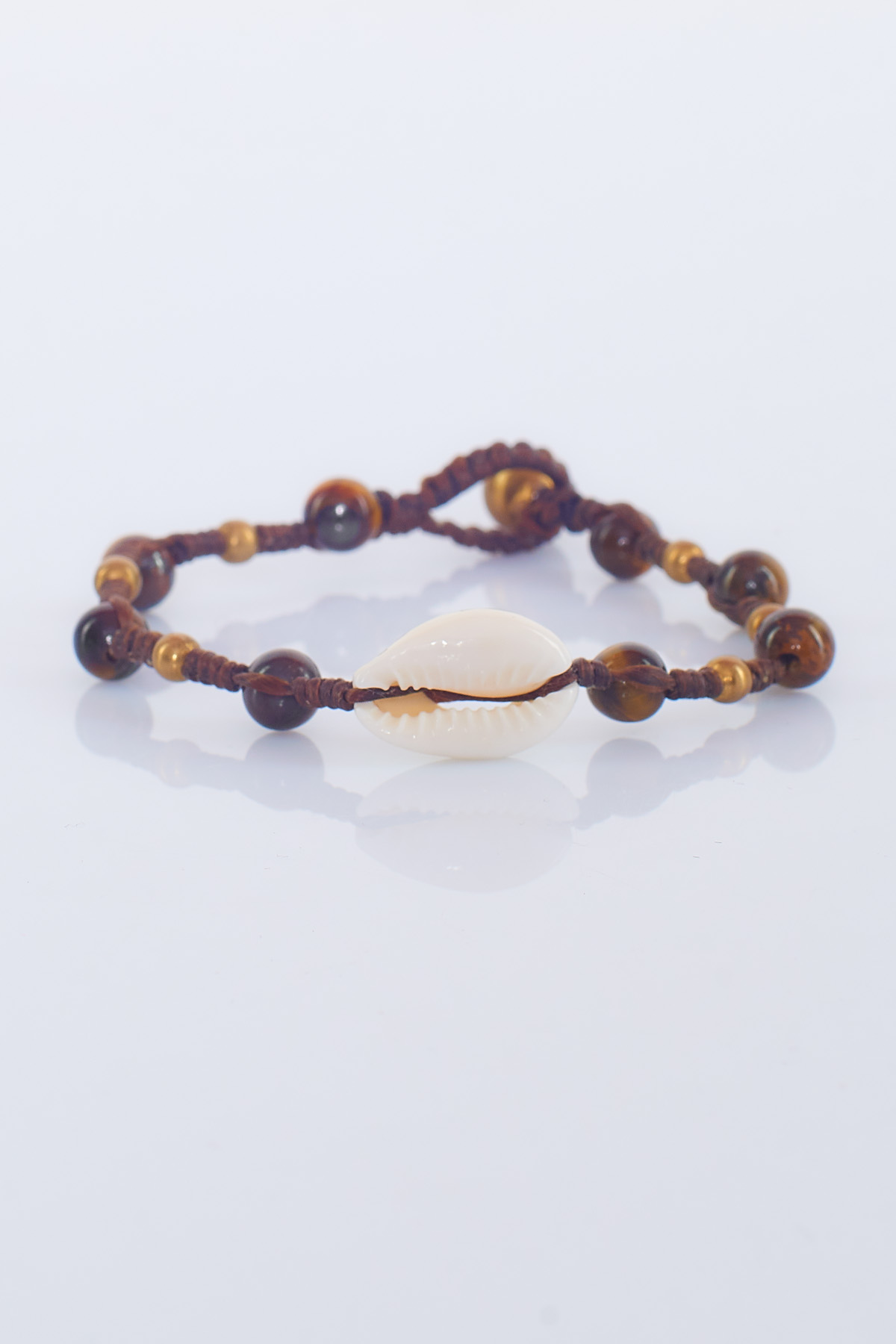 Una pulsera compuesta por múltiples abalorios o piedras de distintas formas con una concha de elemento principal que brinda un estilo único e inigualable.