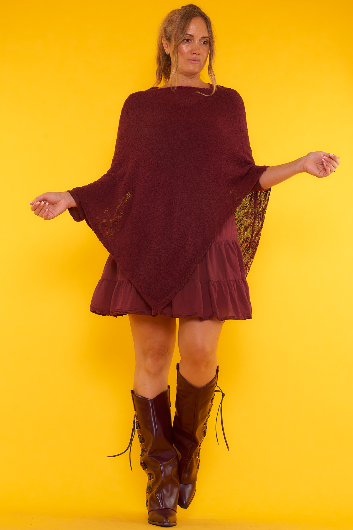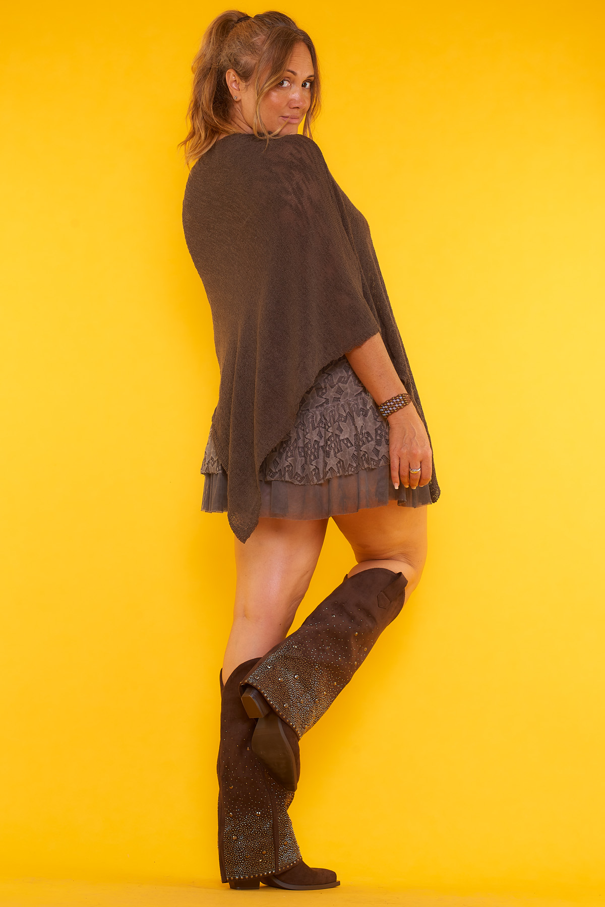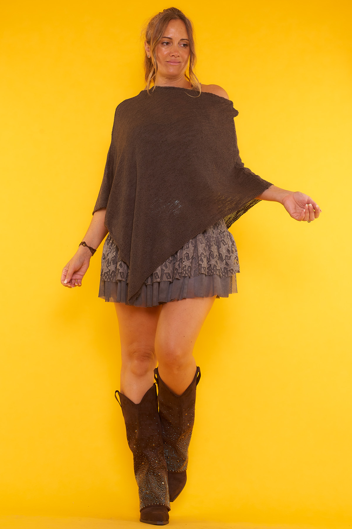Un poncho elástico que se caracteriza por su corte asimétrico, teniendo su parte central más larga que las laterales.