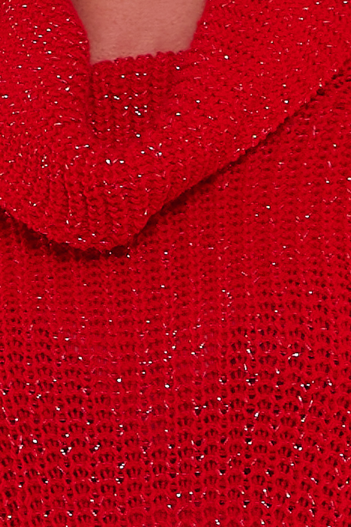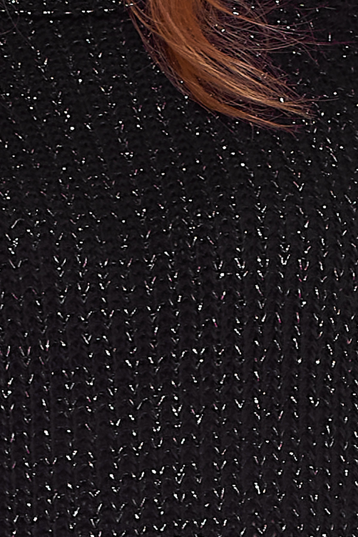 Un vestido corto de punto que tiene un brillo disimulado en su tejido y un cuello de tortuga que estiliza la prenda por completo.